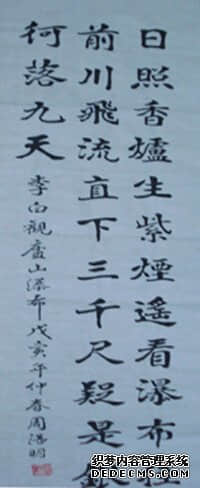周湛明,男,(1928---2002)河南宝丰县人,出身于书香门第,自幼在祖父亲(清朝进士)的熏陶下,读诗文,习书画,苦练历代名家碑帖数十载,其生前为中国书画研究院院士,中国书法家协会会员,中国书法研究院研究员,河南省书法家协会会员,中原书画院等所属会员,资深研究员。 其生前书画作品几十次参加全国及国际书画杯大赛、大展,荣获各种奖四十多次。曾被国内外二十家书画组织聘为名誉院长,高级顾问。其作品及本人传略先后几十家电台,报刊进行专题报道。其作品被选入《国际现代书法集》《当代书法家大辞典》等二十部大型辞典集。中国翰园碑林,嵩山大法王寺将其作品立碑8块永存万代。
